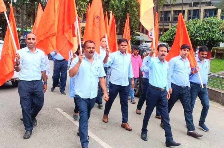 भारतीय मजदूर संघ से संबद्ध सीसीएल कोलियरी कर्मचारी संघ (सीकेएस) ने शुक्रवार को दरभंगा हाउस में कोयला कर्मचारियों की 17 सूत्री मांगों को लेकर धरना दिया. वहीं, कोल इंडिया की सभी अनुषंगी इकाइयों में सभा व खदान परिसर के अगल-बगल गांवों में जन जागरण कार्यक्रम सह नुक्कड़ सभा की गयी. प्रदर्शन के बाद कोयला मंत्री जी किशन रेड्डी तथा कोयला सचिव विक्रम देवदत्त के नाम कंपनी के महाप्रबंधक कार्मिक मानव संसाधन को ज्ञापन सौंपा गया.कोयला उत्पादन में नियमित कर्मचारियों की भागीदारी न्यूनतम 50 फीसदी करने की मांग