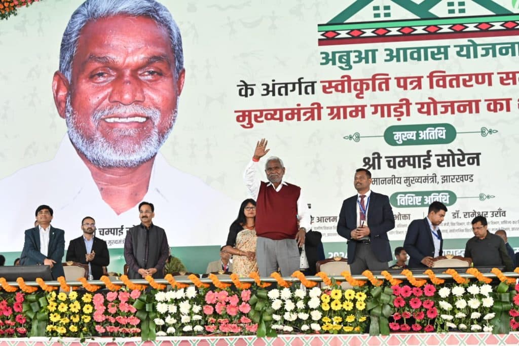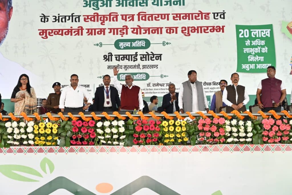 चंपाई सोरेन ने अबुआ आवास योजना के अंतर्गत स्वीकृत पत्र वितरण समारोह एवं मुख्यमंत्री ग्राम गाड़ी योजना का शुभारंभ किया. कार्यक्रम में वह बतौर मुख्य अतिथि शामिल हुए.