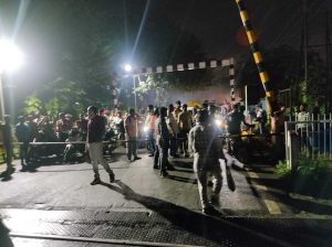 चांदनी चौक से प्रोजेक्ट बिल्डिंग मुख्यालय रोड बुधवार को देर शाम सात बजे से रेलवे फाटक जाम रहने से कई अधिकारी इसमें फंसे रहे