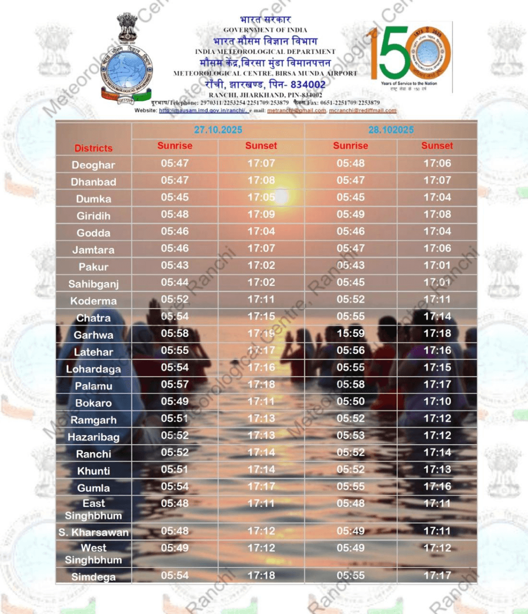 Also Read: छठ पर बारिश का साया! खरना के दिन झारखंड के 17 जिलों में बरसेगा बदरा
