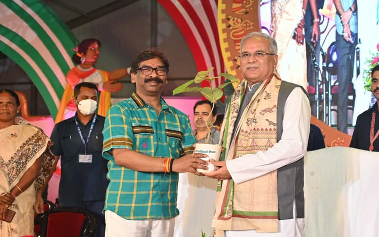 Jharkhand News: छत्तीसगढ़ के मुख्यमंत्री भूपेश बघेल और झारखंड के मुख्यमंत्री हेमंत सोरेन की उपस्थिति में रांची के मोरहाबादी मैदान में चल रहे दो दिवसीय झारखंड जनजातीय महोत्सव 2022 का बुधवार को रंगारंग समापन हो गया. इस मौके पर सीएम श्री सोरेन ने छत्तीसगढ़ सीएम श्री बघेल को सम्मानित किया. वहीं, छत्तीसगढ़ सीएम श्री बघेल ने कहा कि छत्तीसगढ़, ओड़िशा और मध्य प्रदेश देश को ऑक्सीजन और ऊर्जा देने का काम झारखंड करता है.