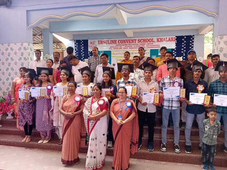 उर्सुलाइन कॉन्वेंट स्कूल में सत्र 2024-2025 में 10वीं बोर्ड परीक्षा में उत्कृष्ट प्रदर्शन करने वाले विद्यार्थियों और उनके माता-पिता के लिए सम्मान समारोह का आयोजन किया गया. मुख्य अतिथि खलारी जिप सदस्य सरस्वती देवी ने आरती व दीप जलाकर समारोह का शुभारंभ किया. समारोह में मुख्य अतिथि, प्राचार्या डॉ सिस्टर निर्मला सैमुअल, उप प्राचार्या सिस्टर नेली लकड़ा व शिक्षकों ने सर्वश्रेष्ठ प्रदर्शन करनेवाले विद्यार्थियों को स्मृति चिह्न, दीक्षांत टोपी व पौधा देकर सम्मानित किया. सम्मानित होने वाले छात्रों में आदित्य कुमार, प्राची दुबे, सुहाना सैफ़ी, ईशांत आर्या, एलिना सोरेंग, प्रकाश कुमार, शैली चौहान, साहिल चौहान, जिया कुमारी तथा युवराज यादव शामिल हैं. इसके बाद अंतरराष्ट्रीय हिंदी ओलिंपियाड 2024 में रीजनल जिला टॉपर कक्षा नौ की सौम्या सिंह को विशेष रूप से सम्मानित करते हुए उसे 6100 रुपये का चेक तथा पौधा देकर सम्मानित किया गया. समारोह में मुख्य अतिथि ने कहा कि माता-पिता की वास्तविक खुशी अपने बच्चों की उन्नति व सफलता में होती है. उनकी खुशी तब और अधिक बढ़ जाती है, जब बच्चों की सफलता से माता -पिता को पहचान मिलती है. समारोह में बच्चों ने सांस्कृतिक कार्यक्रम प्रस्तुत कर समां बांधा. संचालन वरिष्ठ शिक्षिका अनिमा कांसीर तथा विशाल शर्मा ने किया. मौके परप्रभाकर शर्मा, अम्बुज कर्मकार, जॉन डुंगडुंग, किशोर लकड़ा, कलविंदर कौर, सविता नंदन सिंह, मुकेश कुमार सिंह, नॉर्बरता टोप्पो, अलका राही, आरती तिर्की, आरती प्रसाद, प्रतिमा बागे, शशि चौधरी, सुबी सिंह, करिश्मा उजाला लकड़ा आदि उपस्थित थे.05 खलारी 01, सम्मानित होनेवाले बच्चों के साथ अतिथि, प्राचार्या व अभिभावक.