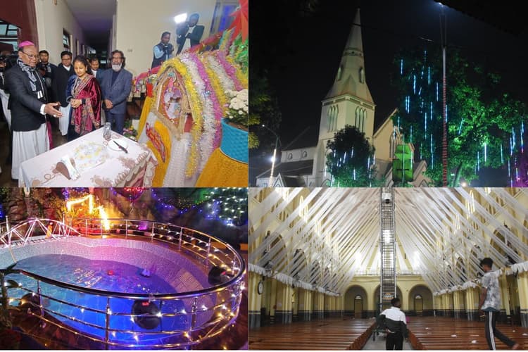 Christmas 2024: रांची-क्रिसमस को लेकर रांची के सभी चर्च को सजाने का काम शुरू कर दिया गया है. मेन रोड स्थित क्राइस्ट चर्च, पुरुलिया रोड स्थित संत मरिया महागिरजाघर, बहूबाजार स्थित संत पॉल्स कैथेड्रल समेत अन्य चर्च को सजाया जा रहा है. रविवार को मुख्यमंत्री हेमंत सोरेन अपनी पत्नी विधायक कल्पना सोरेन के साथ डॉ कामिल बुल्के पथ स्थित आर्चबिशप हाउस पहुंचे. उन्होंने आर्चबिशप विंसेंट आइंद से मुलाकात कर उन्हें क्रिसमस की शुभकामनाएं दीं.