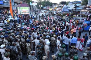 केंद्रीय सरना स्थल सिरमटोली बचाओ मोर्चा के बैनर तले सड़क पर उतरे लोग, की नारेबाजी.