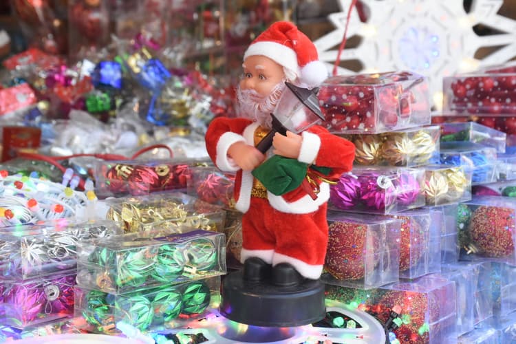 रांची. क्रिसमस आने में अभी 14 दिन शेष है, लेकिन इसके बाजार सज गये हैं. पुरुलिया रोड, चर्च कॉम्प्लेक्स, बहुबाजार, डोरंडा, हिनू, अपर बाजार सहित कई जगहों पर क्रिसमस की सामग्री बिकनी शुरू हो गयी है. चौक-चौराहों पर क्रिसमस की रौनक है. रंग-बिरंगे स्टार और क्रिसमस ट्री लुभा रहे हैं. क्रिसमस ट्री, चरनी, म्यूजिकल व लाइटिंग सांता, सांता कैप, सांता सेट, बॉल जैसे आइटम बिक रहे हैं. ज्यादातर आइटम, केरल, कोलकाता, चेन्नई, दिल्ली से मंगाये गये हैं. बाजार में सांता क्लाॅज के साथ-साथ छोटे-बड़े डिजाइन में स्टार, क्रिसमस ट्री, रेनडियर, बॉल, गिफ्ट बॉक्स, रोलेक्स रिबन के अलावा कई गिफ्ट आइटम बिक रहे हैं.