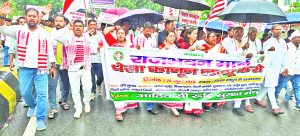 राज्य में पेसा कानून लागू करने की मांग को लेकर आदिवासी रूढ़ि सुरक्षा मंच ने राजभवन मार्च किया, राज्यपाल के नाम सौंपा ज्ञापन.