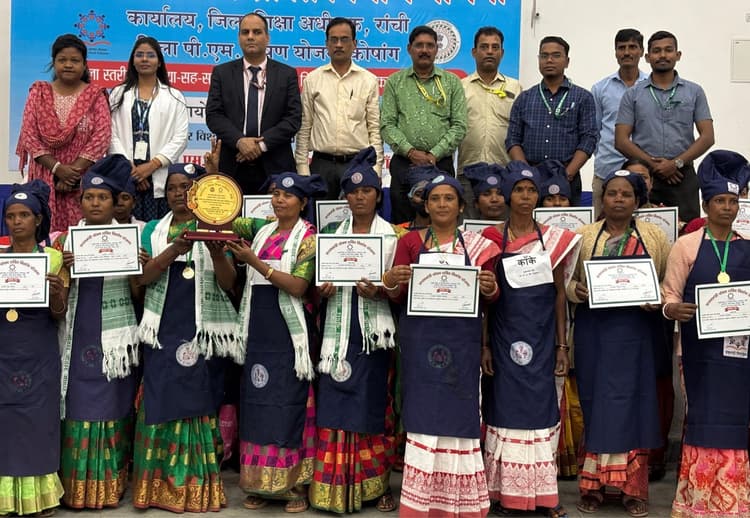 रांची. सरकारी स्कूलों में मिड डे मिल बनानेवाले रसोइयों के लिए जिला स्तरीय कुकिंग कंपीटिशन का आयोजन अमर शहीद ठाकुर विश्वनाथ शाहदेव सीएम एक्सीलेंस स्कूल में किया गया. इसमें जिले के विभिन्न प्रखंडों से चयनित रसोइया ने भाग लिया. इन रसोइया द्वारा मोटे अनाज से विभिन्न प्रकार के व्यंजन बनाये गये. जिसका लुत्फ अतिथियों द्वारा उठाया गया. संत मारिया मध्य विद्यालय कांके की शीला बारला को विजेता व उत्क्रमित उच्च विद्यालय बढ़ैया, चान्हो की जयंती देवी को उप विजेता घोषित किया गया. विजेता व उप विजेता के बैंक खाते में क्रमश: पांच हजार व 2500 की राशि भेजी गयी. अन्य सभी प्रतिभागी को प्रमाण पत्र एवं मेडल दिया गया. कार्यक्रम में डीएसइ बादल राज ने कहा कि इन रसोइया द्वारा सीमित संसाधन में मिड डे मिल बनाया जाता है. आज सरकारी स्कूलों में बच्चों की जो भी उपस्थिति है, उसमें इन रसोइये की प्रमुख भूमिका है.