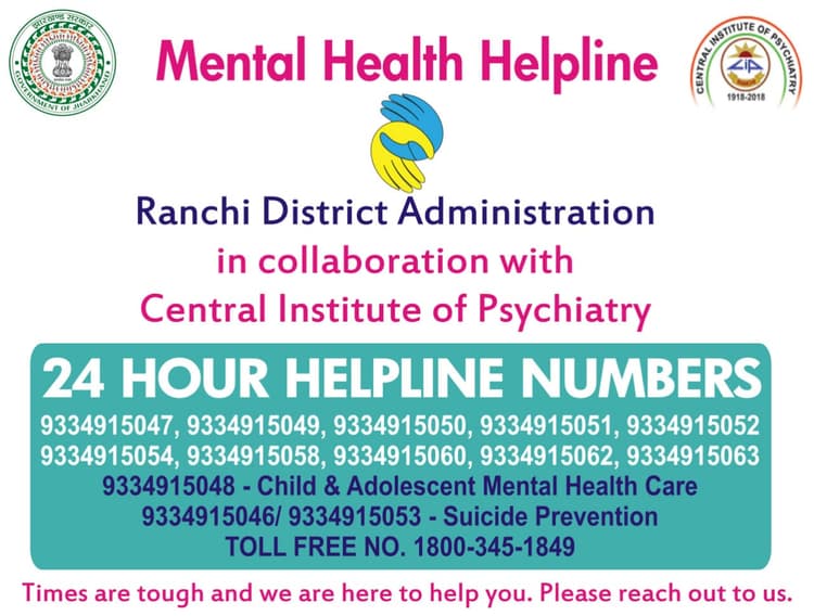 बच्चे और किशोरों के मेन्टल हेल्थ केयर के लिए हेल्पलाइन नंबर 9334915046 और 9334915053 जारी किये गये हैं, जिस पर कॉल कर परामर्श लिया जा सकता है. सुसाइड प्रिवेंशन के लिए भी जिला प्रशासन की ओर से टोल फ्री नंबर जारी किया गया है. यह टोल फ्री नंबर है 18003451849