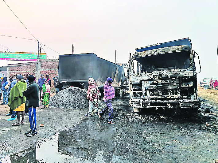 चौक के किनारे रेलवे के निर्माण से जुड़ा चिप्स लदा एक डंपर पहले से खड़ा था. उसका चालक एक होटल में चाय पी रहा था. अपराधियों ने उस डंपर में भी आग लगा दी. इस बीच अपराधियों ने करीब पांच राउंड गोली भी चलायी. डंपर चालक मारूफ और मिठु राम और ग्रामीण अर्जुन महतो के साथ मारपीट भी की गयी. सभी का मोबाइल फोन छीनकर आग में फेंक दिया गया. घटना को अंजाम देने के बाद अपराधी भाग गये. सूचना मिलते ही खलारी थाना प्रभारी विजय कुमार सिंह के अलावा मैक्लुस्कीगंज थाना के गोविंद कुमार, पिपरवार थाना प्रभारी प्रशांत कुमार मिश्रा और बुढ़मू थाना प्रभारी रितेश महतो पहुंच गये. सीसीएल के चूरी माइंस रेस्क्यू से दमकल मंगाया गया. आग पर पूरी तरह काबू पाने के लिए दमकल को दो बार पानी भरना पड़ा. इसके बावजूद तीनों हाइवा जल गये. फ्लाई ऐश लदे डंपर टंडवा मिश्रौल के थे. जले हुए डंपरों को सड़क से हटाकर आवागमन चालू कर दिया गया है.आलोक गिरोह ने ली घटना की जिम्मेवारी, कहा : कुर्की जब्ती के विरोध में दिया घटना को अंजाम