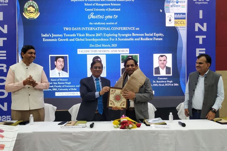 रांची-केंद्रीय विश्वविद्यालय झारखंड (CUJ) के ऑडिटोरियम में शनिवार को ‘विकसित भारत-2047 की ओर भारत की यात्रा: एक टिकाऊ और लचीले भविष्य के लिए सामाजिक समानता, आर्थिक विकास और वैश्विक अंतर्निर्भरता के बीच तालमेल की खोज’ विषय पर दो दिवसीय अंतरराष्ट्रीय सम्मेलन का समापन हुआ. यह सम्मेलन विद्वानों, नीति-निर्माताओं और उद्योग विशेषज्ञों के लिए भारत के विकास का रोडमैप और सतत आर्थिक प्रगति पर विचार-विमर्श करने का एक महत्वपूर्ण मंच साबित हुआ. सम्मेलन की शुरुआत भारत की औद्योगिक प्रगति: वैश्विक पारस्परिकता, तकनीकी व्यवधान और सतत विकास के बीच संतुलन विषय पर चर्चा से हुई. इस सत्र का संचालन डॉ नितेश भाटिया (डीबीए, सीयूजे) ने किया. इसमें प्रो अजय सिंह (दिल्ली विश्वविद्यालय), इंद्रजीत यादव (निदेशक, एमएसएमई, रांची), संजीव कुमार (सेवानिवृत्त कार्यकारी निदेशक, मेकॉन, रांची) और प्रो भगवान सिंह (डीबीए, सीयूजे) ने भाग लिया. केंद्रीय विश्वविद्यालय झारखंड के कुलपति प्रो क्षिति भूषण दास ने कहा कि किसी देश को नष्ट करना हो, तो उसकी शिक्षा प्रणाली को नष्ट कर दो.