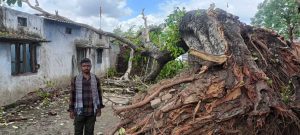 पेड़ गिरने से ध्वस्त हुआ मकान, दिहाड़ी मजदूर का परिवार बेघर