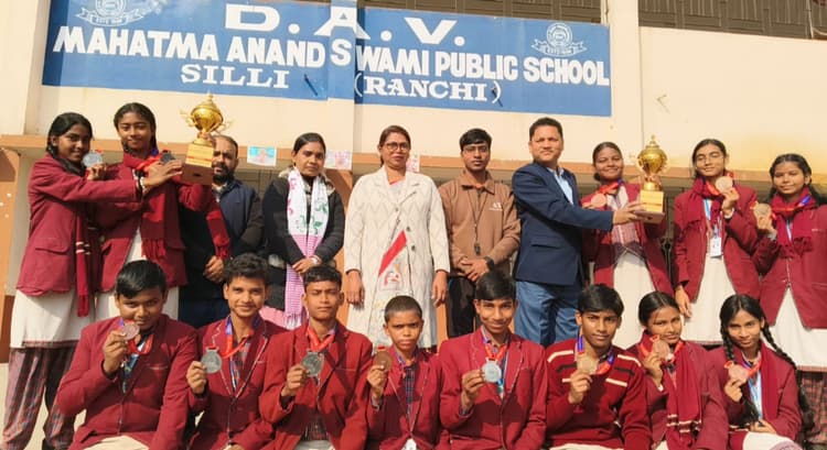 सिल्ली. डीएवी महात्मा आनंद स्वामी पब्लिक स्कूल, सिल्ली के विद्यार्थियों ने डीएवी नेशनल स्पोर्ट्स में बेहतर प्रदर्शन किया है. नयी दिल्ली, नोएडा, रायपुर एवं हरिद्वार में आयोजित प्रतियोगिता में डीएवी सिल्ली की टीम ने अंडर-14 एवं अंडर-17 वर्ग में प्रथम उपविजेता का स्थान प्राप्त कर राष्ट्रीय स्तर पर ट्रॉफी जीत कर विद्यालय का गौरव बढ़ाया है. सोमवार को विद्यालय परिसर में सभी पदक विजेता खिलाड़ियों को सम्मानित किया गया. प्राचार्य बुबुन शरण ने खिलाड़ियों को मेडल देकर सम्मानित किया. विद्यालय से मिली जानकारी के मुताबिक प्रतियोगिता में डीएवी के विद्यार्थियों ने कुल 13 पदक जीते है. जिसमें 03 स्वर्ण, 05 रजत एवं 05 कांस्य पदक शामिल है. विद्यालय की प्रधानाचार्या सुश्री बी शरण ने बच्चों की ऐतिहासिक सफलता पर कहा कि विद्यार्थियों की यह उपलब्धि उनके अनुशासन, परिश्रम और दृढ़ संकल्प का परिणाम है. सभी खेल शिक्षकों की भी भूमिका महत्वपूर्ण है. शिक्षक एसएन मुखर्जी, शशांक कुमार पाठक व खुशबू शर्मा सहित अन्य शिक्षकों ने भी विद्यार्थियों का उत्साहवर्धन किया.