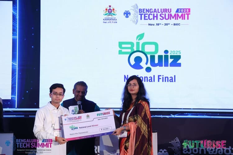रांची. बेंगलुरु टेक समिट-2025 के तीसरे दिन भारतीय कृषि जैव प्रौद्योगिकी संस्थान (आइआइएबी), रांची के बीटेक द्वितीय वर्ष के छात्र देबर्घ्य मैती ने प्रतिष्ठित नेशनल लेवल बायोक्विज-2025 में प्रथम स्थान हासिल किया. फ्यूचराइज थीम पर आधारित इस समिट में आयोजित बायोक्विज अपनी कठोर मूल्यांकन प्रक्रिया के लिए प्रसिद्ध है. प्रीलिम्स, जोनल्स के बाद नेशनल स्तर पर आयोजित की गयी है. इस्टर्न जोन का प्रतिनिधित्व करते हुए देबर्घ्य ने नेशनल राउंड में 400 अंक प्राप्त किया था. संस्थान के निदेशक डॉ सुजय रक्षित ने देबर्घ्य को बधाई दी. कहा कि प्रतियोगिता में सफल होने के लिए अकादमिक कठोरता जरूरी है.