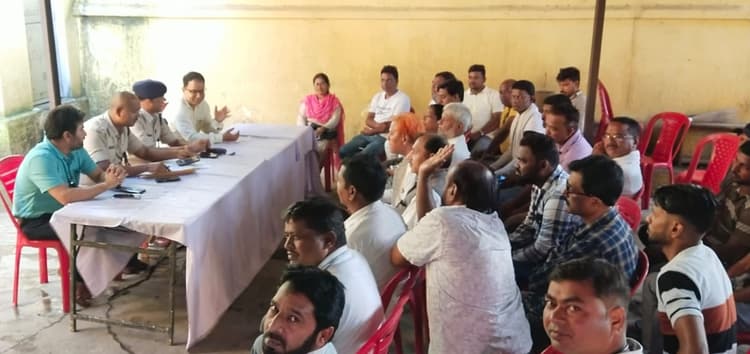 खलारी. खलारी थाना परिसर में मुहर्रम को लेकर शांति समिति की बैठक हुई. बैठक की अध्यक्षता थाना प्रभारी सह इंस्पेक्टर जयदीप टोप्पो ने की. बैठक में मुहर्रम त्योहार को आपसी भाईचारगी के साथ मनाने का निर्णय लिया गया. मुहर्रम के मौके पर निकलने वाले जुलूस व मेला को लेकर चर्चा की गई, इस दौरान सुरक्षा का पुख्ता इंतेजाम करने का निर्णय लिया गया. इंस्पेक्टर जयदीप टोप्पो ने सभी लोगों से आपसी सौहार्द्र के साथ त्योहार मनाने की अपील की. खलारी डीएसपी रामनारायण चौधरी ने कहा कि मुहर्रम जुलूस और मेला में सुरक्षा का पुख्ता इंतेजाम किया जाएगा. बैठक का संचालन खलारी अंचलाधिकारी प्रणव अम्बष्ट ने किया..बैठक मे एसआई कपिलदेव यादव, पीएचसी प्रभारी डॉ इरशाद, अनिल पासवान, मुखिया पारसनाथ उरांव, तेजी किस्पोट्टा, मिंटू सिंह, तनवीर आलम, बशीर अंसारी, विक्की सिंह, अब्बास अंसारी आदि मौजूद थे.