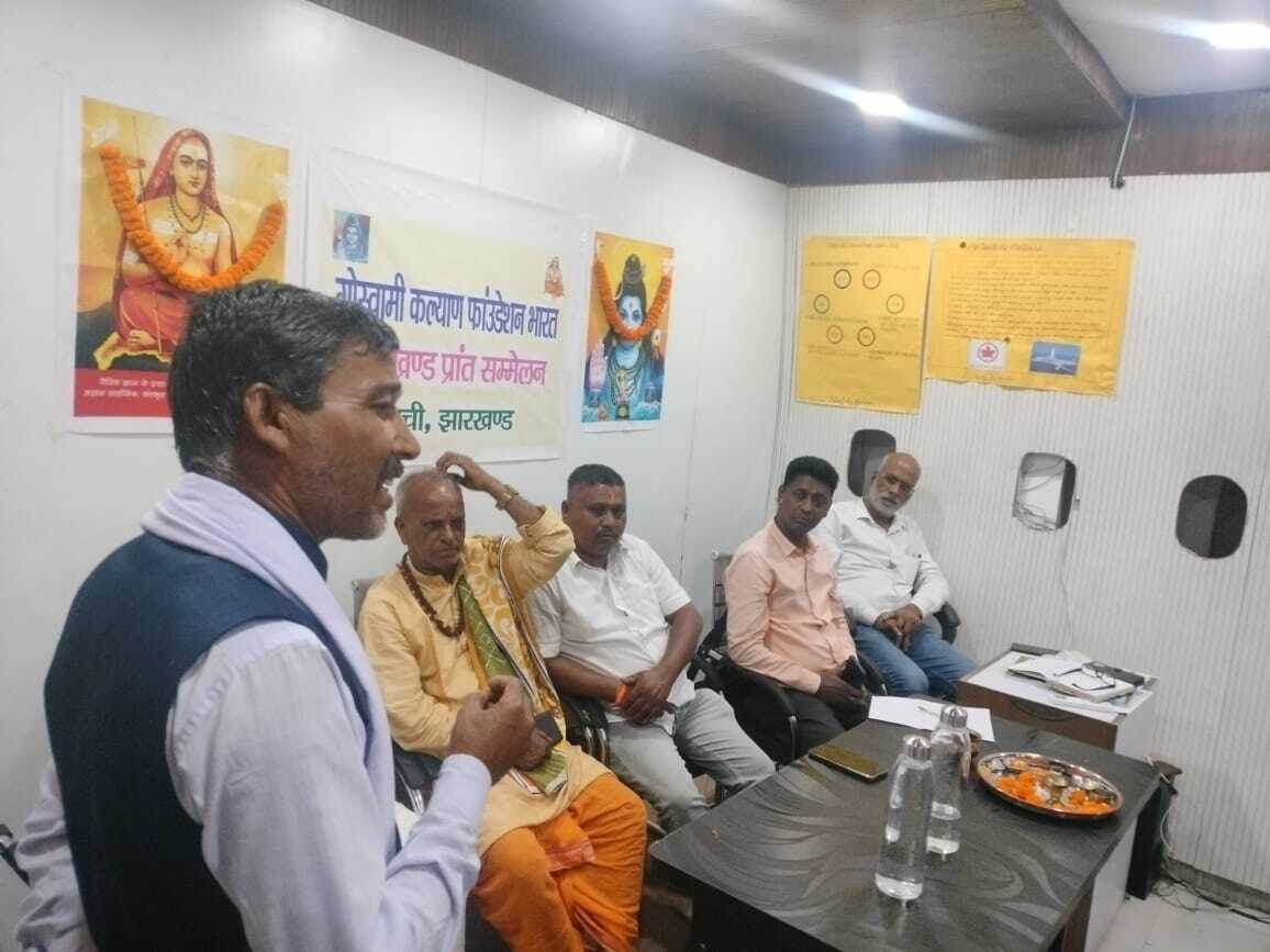 रांची. गोस्वामी कल्याण फाउंडेशन का राज्य सम्मेलन रविवार को हरमू स्थित अस्थायी कार्यालय में हुआ. वहीं प्रदेश कार्यकारिणी की बैठक भी प्रदेश अध्यक्ष उमेश गिरी की अध्यक्षता में हुई. बैठक में संगठनात्मक मुद्दे पर चर्चा की गयी. संगठन में अंतिम पायदान पर खड़े व्यक्ति तक को जोड़ने का निर्णय लिया गया ताकि विकास की दौड़ में वह बहुत पीछे न छूट जाये. वहीं सामाजिक गतिविधियों को तेज करने का भी निर्णय लिया गया. संचालन प्रदेश महासचिव विपिन गिरी ने किया. बैठक में प्रदेश उपाध्यक्ष समरेश गिरी, रांची जिला युवा अध्यक्ष संजीत गिरी, समरसता प्रमुख दीपा गोस्वामी, केंद्रीय सदस्य नरेश पंडा, गिरिडीह जिला अध्यक्ष वासुदेव पंडा, कोडरमा जिला अध्यक्ष शत्रुघ्न गिरी, प्रदेश संगठन मंत्री वरुण गिरी, परमानंद गिरि, सिमडेगा महिला जिला अध्यक्ष हेमा भारती, मीणा गोस्वामी, राजीव गौरव गिरी, अनुपम गिरी सहित अन्य ने विचार रखे. बैठक में केंद्रीय संरक्षक अरविंद गिरी, केंद्रीय उपाध्यक्ष संपूर्णा नंद भारती के अलावा अखिल भारतीय दसनाम गोस्वामी समाज के प्रदेश अध्यक्ष महेंद्र गिरी व शिवकुमार गिरी उपस्थित थे.