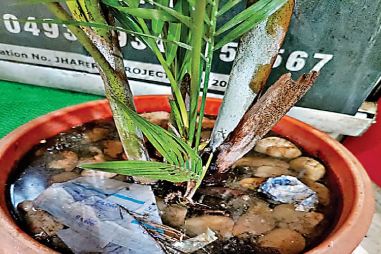 टीबी एंड चेस्ट ओपीडी के सामने गमले रखे हुए हैं. इस गमले में कई दिनों से पानी जमा है. ऐसे में डेंगू का लार्वा पनपने का खतरा बना हुआ है.