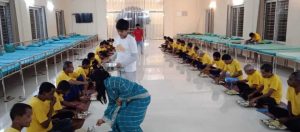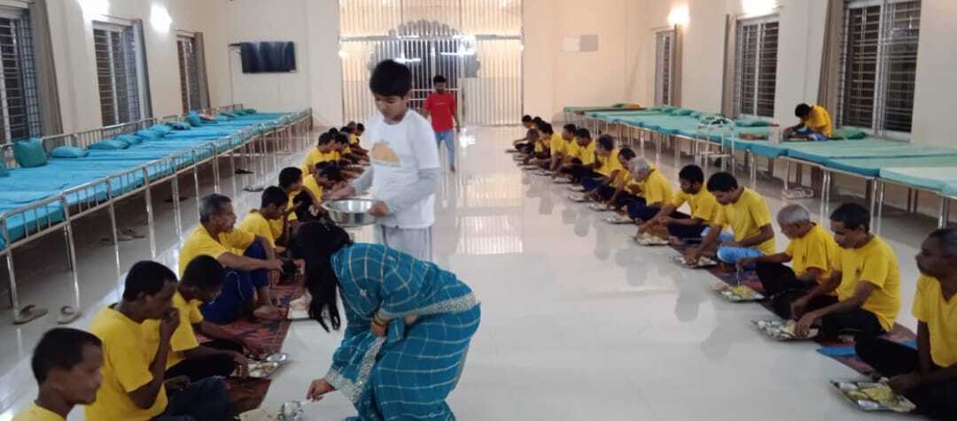 पुंदाग स्थित अपना घर आश्रम में रह रहे 37 निराश्रित प्रभु जी के बीच बुधवार को कुसुम तुलस्यान की ओर से भोजन करवाया गया.