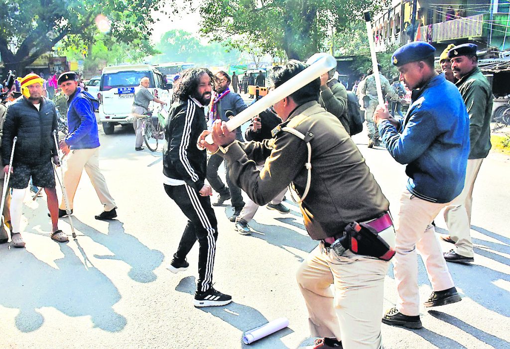 लाठी-चार्ज कर गिरफ्तार कर लिया