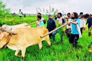 कंधे पर हल और बैल के साथ रिम्स-2 के खिलाफ आंदोलन में कूदे देवेंद्र महतो, खेत जोता