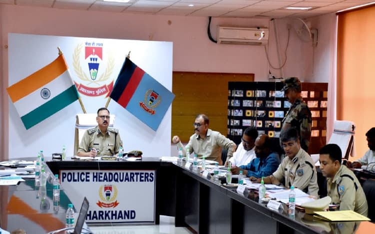 रांची: झारखंड में पुराने सभी लंबित कांडों का त्वरित निष्पादन करने, न्यायालयों/न्यायिक पदाधिकारियों के आवासीय परिसर की सुरक्षा व्यवस्था दुरूस्त करने एवं कोयला चोरी पर प्रभावी रोकथाम को लेकर पुलिस महानिदेशक अजय कुमार सिंह की अध्यक्षता में आज मंगलवार को पुलिस मुख्यालय स्थित सभागार में बैठक हुई. वीडियो कॉन्फ्रेंसिंग के जरिए आयोजित इस समीक्षा बैठक में डीजीपी ने आवश्यक दिशा-निर्देश दिए.