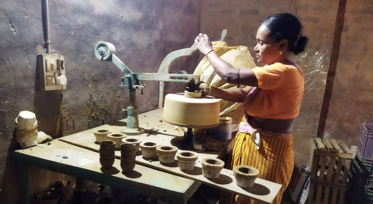 Diwali 2021, रांची न्यूज (आनंद राम महतो) : झारखंड के रांची जिले के बुंडू स्थित ब्लॉक रोड में आधार महिला शिल्प कला केंद्र में नयी तकनीक से मिट्टी के दीये समेत अन्य कलाकृतियां बनायी जा रही हैं. शिल्पकार मिट्टी के मनमोहक सामान बना रहे हैं. खासकर दिवाली को लेकर बच्चों के लिए विभिन्न तरह के खिलौने और विभिन्न प्रकार के दीये बनाये जा रहे हैं. यहां निर्मित सामग्रियों की मांग न सिर्फ झारखंड में रहती है, बल्कि दूसरों राज्यों में भी रहती है.