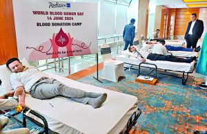 रिम्स के सहयोग से रेडिशन ब्लू में रक्तदान शिविर लगाया गया. रक्तदान दिवस पर आयोजित शिविर में 40 से अधिक लोगों ने रक्तदान किया.