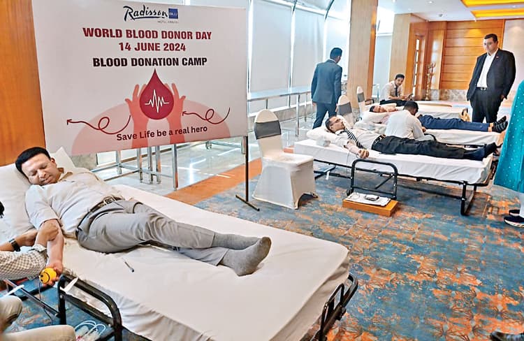 रांची. रिम्स के सहयोग से रेडिशन ब्लू में रक्तदान शिविर लगाया गया. रक्तदान दिवस पर आयोजित शिविर में 40 से अधिक लोगों ने रक्तदान किया. रिम्स ब्लड सेंटर की असिस्टेंट प्रोफेसर डॉ उषा ने बताया कि लोगों को हर तीन माह पर रक्तदान कर समाज के प्रति अपना कर्तव्य पूरा करना चाहिए. शिविर में जमा किये गये रक्त को रिम्स के ब्लड सेंटर में रखा जायेगा. रिम्स की काउंसलर डॉ कविता ने कहा कि रक्तदान के लिए उम्र सीमा कम से कम 18 वर्ष होनी चाहिए. आप योग्य रक्तदाता तभी कहलायेंगे, जब आप स्वस्थ होंगे. यह कार्य मानवता के लिए बड़ा कार्य है. ऋषभ हलधर 25 बार कर चुके हैं रक्तदान : शिविर में ऋषभ हलधर ने कहा कि उन्हें रक्तदान करना अच्छा लगता है. वह वर्ष 2001 से रक्तदान कर रहे हैं. अब तक 25 बार रक्तदान कर चुके हैं. शंकर और शशि ने पहली बार रक्तदान किया : शिविर में शंकर विश्वकर्मा ने 26 वर्ष की उम्र में पहली बार रक्तदान किया. उन्होंने कहा कि समाज के लिए यह पुण्य का कार्य है. रक्तदान से डरने की कोई जरूरत नहीं है. हमें इसमें बढ़-चढ़कर हिस्सा लेना चाहिए. 27 वर्षीय शशि कुमार ने भी पहली बार रक्तदान किया. उन्होंने कहा कि वह दान करना चाहते थे, लेकिन उस समय फिजिकली फिट नहीं रहने के कारण इसमें शामिल नहीं हो पा रहे थे. अब वह पूरी तरह फिट हैं.