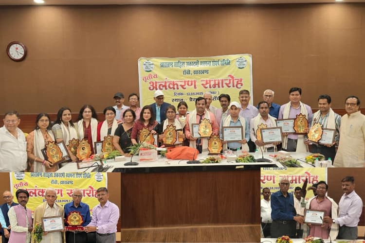 रांची-समग्र साहित्यिक अवदान के लिए वरिष्ठ साहित्यकार डॉ अशोक प्रियदर्शी (रांची) को बिरसा मुंडा शिखर सम्मान से सम्मानित किया गया. बिनोद बिहारी महतो स्मृति सम्मान डॉ शेखर मल्लिक (घाटशिला) को उत्कृष्ट साहित्य लेखन के लिए दिया गया है. रश्मि शर्मा (रांची) को कथा लेखन के लिए राधाकृष्ण स्मृति सम्मान, लेखन के लिए रजनी गुप्ता (रामगढ़) को डॉ रामदयाल मुंडा स्मृति सम्मान मिला है. रांची की सत्या शर्मा कीर्ति को समकालीन कविता के लिए भारत यायावर स्मृति युवा सम्मान मिला. कुल 15 सम्मानित किए गए. प्रेस क्लब में आयोजित झारखंड साहित्य अकादमी स्थापना संघर्ष समिति के तीसरे अलंकरण समारोह में इन्हें सम्मानित किया गया. समिति के अध्यक्ष शिरोमणि महतो और महासचिव नीरज नीर ने सभी को बधाई दी है.