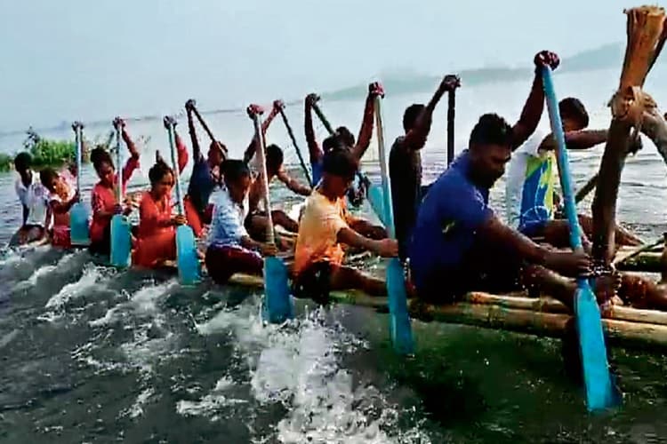 बोट के अभाव में खिलाड़ियों ने देसी जुगाड़ लगाया है. इन्होंने पतरातू डैम में बांस का प्लेटफॉर्म बनाया है. इसी पर सवार होकर सभी खिलाड़ी घंटों चप्पू चलाने की प्रैक्टिस करते हैं. डैम के बढ़ते-घटते जलस्तर के अनुसार प्लेटफॉर्म को ऊपर नीचे शिफ्ट करना पड़ता है.