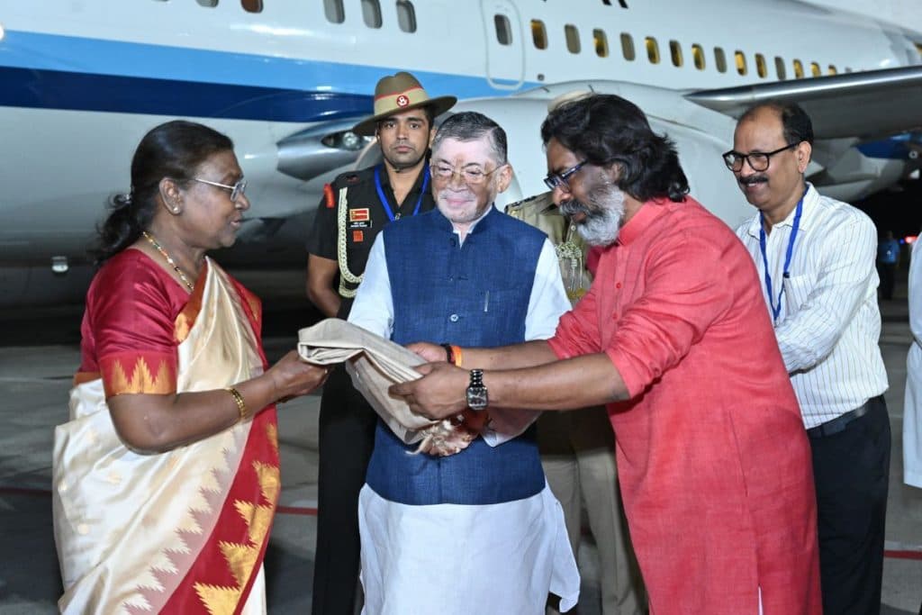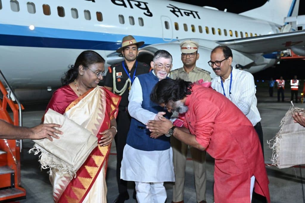 राष्ट्रपति के रांची आगमन और एयरपोर्ट पर उनका स्वागत करने के बाद मुख्यमंत्री हेमंत सोरेन ने सोशल मीडिया साइट ‘एक्स’ पर लिखा- झारखंड की वीर भूमि पर देश की माननीय राष्ट्रपति द्रौपदी मुर्मू जी का हार्दिक अभिनंदन, स्वागत और जोहार. एयरपोर्ट पर राष्ट्रपति का स्वागत और अभिनंदन करने वालों में केंद्रीय कृषि मंत्री शिवराज सिंह चौहान और झारखंड के मुख्य सचिव एल खियांग्ते भी शामिल थे.