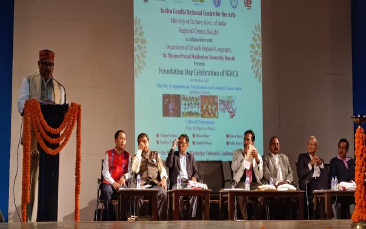 रांची: इंदिरा गांधी नेशनल सेंटर फॉर द आर्ट्स और डॉ श्यामा प्रसाद मुखर्जी विश्वविद्यालय के टीआरएल विभाग के संयुक्त तत्वावधान में संगोष्ठी का आयोजन किया गया. विषय था-जनजातीय संस्कृति और पारिस्थितिकी संरक्षण. स्वागत भाषण इंदिरा गांधी नेशनल सेंटर फॉर आर्ट्स रांची के रिजनल डायरेक्टर डॉ सपम रणबीर सिंह ने दिया. डॉ श्यामा प्रसाद मुखर्जी विश्वविद्यालय के कुलपति डॉ तपन कुमार शांडिल्य ने कहा कि ग्लोबल वॉर्मिंग, प्रकृति से खिलवाड़ जैसे कई महत्वपूर्ण कारक हैं, जिनके कारण जनजातीय संस्कृति विलुप्त होने की कगार पर है. उन्होंने कहा कि संरक्षण के लिए सामूहिक सहभागिता की आवश्यकता है.