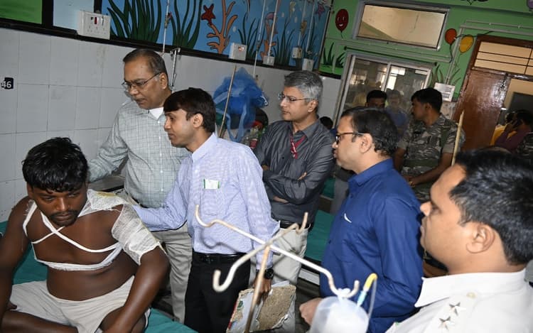 आज रिम्स के तीन डॉक्टर हेलीकॉप्टर से दुमका पहुंचे और वहां से फूलो झानो मेडिकल कॉलेज अस्पताल आकर जले हुए मरीजों के चल रहे इलाज का जायजा लिया. इन्होंने अपने स्तर से बारी-बारी से मरीजों की जांच की. इस टीम में सर्जन डॉ गौरव, क्रिटिकल केयर के डॉ वरुण और प्लास्टिक सर्जन डॉ विक्रांत रंजन मौजूद थे.