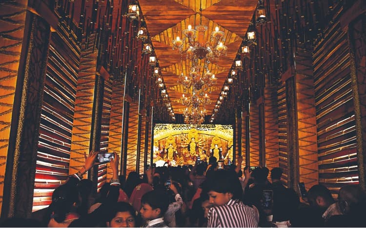 कोकर दुर्गा पूजा एचबी रोड ने काल्पनिक मंदिर बनाया है. शनिवार को पूर्व केंद्रीय मंत्री सुबोधकांत सहाय ने पंडाल का उद्घाटन किया. अध्यक्ष चंचल चटर्जी ने कहा कि पंडाल की ऊंचाई 60 फीट, लंबाई 40 और चौड़ाई 48 फीट है. जबकि मूर्ति की उंचाई 12 फीट है.
