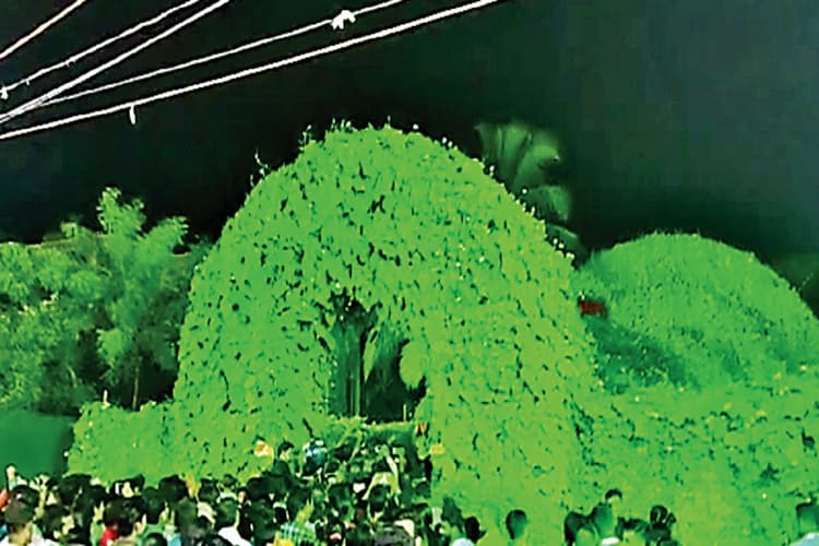 प्राचीन मंदिर का दिया जा रहा स्वरूप : पूजा पंडाल को पूरी तरह से प्राचीन मंदिर का स्वरूप दिया जा रहा है. मंदिर की बनावट ऐसी होगी कि बहुत पुराना होने के कारण इसमें पेड़े-पौधे उग आये हैं. यह पूजा पंडाल पूरी तरह से इको फ्रेंडली होगा. पूजा पंडाल का निर्माण पश्चिम बंगाल के कारीगरों द्वारा किया जा रहा है. दो माह से कारीगर पंडाल बनाने में जुटे हैं.