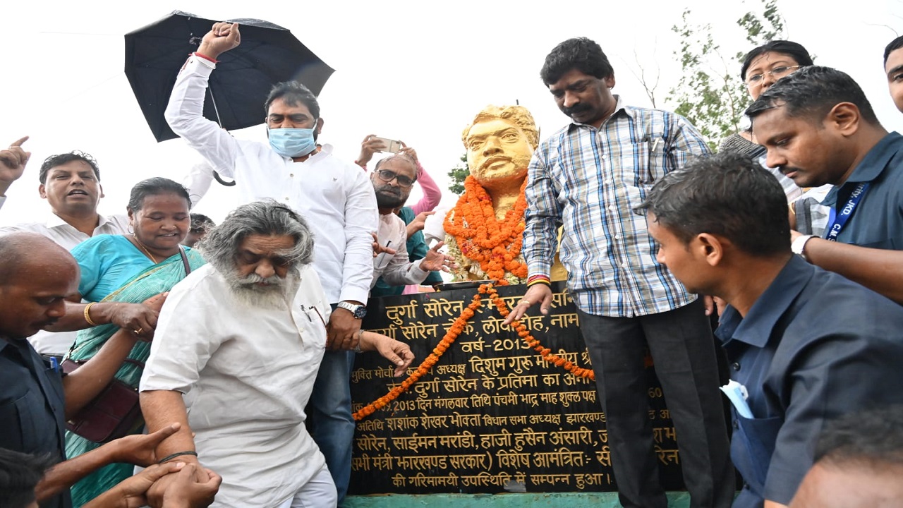 झारखंड आंदोलनकारी एवं पूर्व विधायक स्वर्गीय दुर्गा सोरेन की 13वीं पुण्यतिथि मनायी गयी. इस मौके पर रांची के नामकुम के लोवाडीह दुर्गा सोरेन चौक स्थित प्रतिमा पर झारखंड के मुख्यमंत्री हेमंत सोरेन एवं राज्यसभा सांसद दिशोम गुरु शिबू सोरेन ने माल्यार्पण कर श्रद्धांजलि अर्पित की. दुर्गा सोरेन स्मारक समिति की ओर से पुण्यतिथि कार्यक्रम को लेकर 12 बजे का समय निर्धारित किया गया था. सीएम हेमंत सोरेन का काफिला जब कार्यक्रम स्थल पहुंचा, उस समय काफी तेज बारिश होने लगी थी. इस कारण लगभग 15 मिनट तक सीएम हेमंत सोरेन एवं राज्यसभा सांसद शिबू सोरेन अपनी गाड़ी में ही बैठे रहे. बारिश कम होने पर उन्होंने माल्यार्पण किया. इस दौरान सुरक्षा में तैनात जवान बारिश में भींगते हुए ड्यूटी करते रहे.