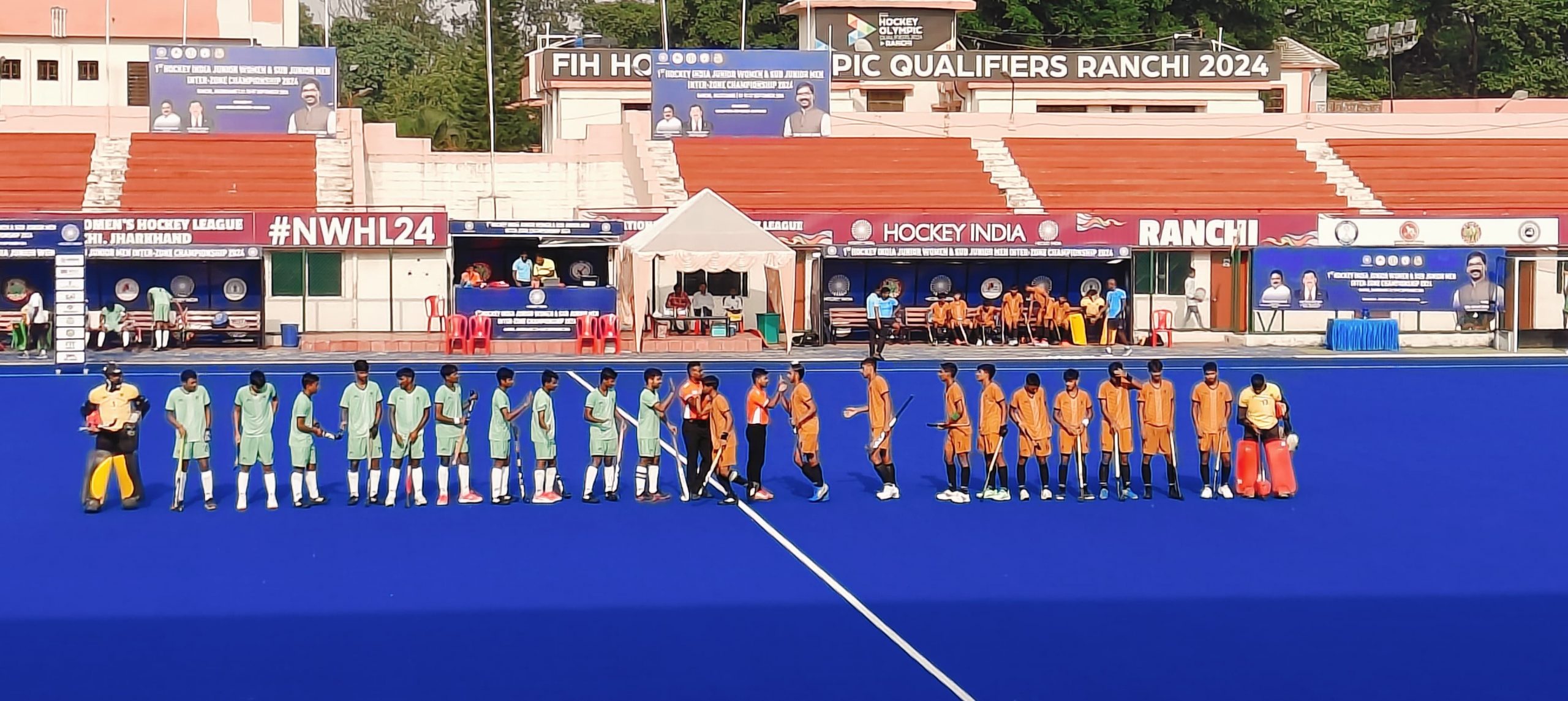 रांची. हॉकी इंडिया और हॉकी झारखंड के संयुक्त तत्वावधान में जयपाल सिंह मुंडा हॉकी स्टेडियम में खेले जा रहे प्रथम जूनियर महिला व सब जूनियर पुरुष इंटर जोन हॉकी चैंपियनशिप में शुक्रवार को चार सेमीफाइनल मुकाबले खेले गये. जूनियर महिला वर्ग के पहले सेमीफाइनल में पूर्वी क्षेत्र ने शूटआउट में साईं बल को 3-0 से हरा कर फाइनल में पहुंची. पवित्रा होदम वीमेन ऑफ द मैच बनी. दूसरे सेमीफाइनल में साईं शक्ति ने पश्चिम क्षेत्र को 4-0 से हरा कर फाइनल में प्रवेश किया. वहीं सब जूनियर पुरुष वर्ग के पहले सेमीफाइनल में दक्षिणी क्षेत्र ने पश्चिम क्षेत्र को शूटआउट में 3-1 से हरा कर फाइनल में पहुंचा. अक्षित मैन ऑफ द प्लेयर बने. दूसरे मैच में पूर्वी क्षेत्र ने साईं अकादमी को 4-2 से हरा कर फाइनल में जगह बनायी. निकोलस टोपनो मैन ऑफ द प्लेयर बने. शनिवार को महिला व पुरुष वर्ग के फाइनल मुकाबले और तीसरे और चौथे स्थान के मैच होंगे.