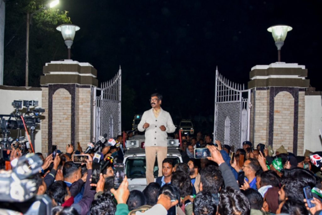 इडी टीम के लौटने के बाद रात करीब पौने नौ बजे मुख्यमंत्री आवास के बाहर कार्यकर्ताओं को एक जिप्सी पर खड़े होकर हेमंत सोरेन ने संबोधित किया. इसी दौरान हल्की बारिश होने लगी. सीएम ने कार्यकर्ताओं से कहा कि आप डटे रहे, इसके लिए हम आपके आभारी हैं. अब सब अपने-अपने घर लौटें. )
