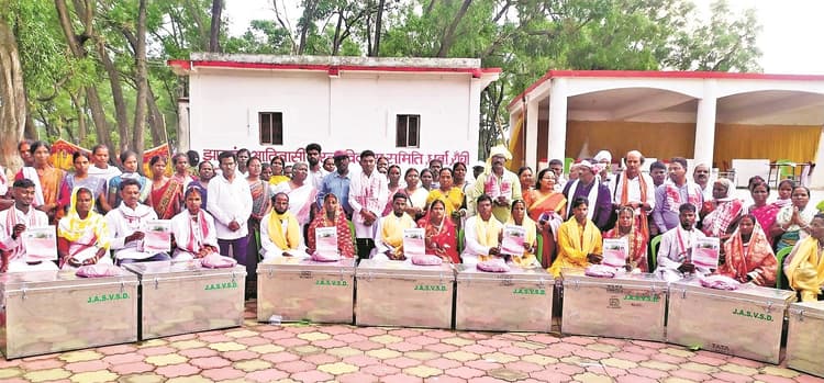 रांची. झारखंड आदिवासी सरना विकास समिति,धुर्वा के तत्वावधान में सामूहिक विवाह कार्यक्रम हुआ. धुर्वा के सेक्टर 3 एन टाइप स्थित विवाह स्थल पर रविवार को आठ जोड़ों का विवाह कराया गया. विवाह में सरना समाज के पारंपरिक रीति रिवाज नेग का पालन किया गया. विवाह के बाद जोड़ों को प्रमाण पत्र भी दिया गया. इसके अलावा समिति की ओर से रसोई और गृहस्थी के सामान दिये गये. इस मौके पर उपस्थित लोगों ने नवदंपतियों को आशीर्वाद देकर उनके सुखमय भविष्य की कामना की. मेहमानों के लिए समिति ने भोज का भी प्रबंध किया था. समिति के अध्यक्ष मेघा उरांव ने कहा कि समिति बीते कई वर्षों से गरीब और असहाय परिवारों के लड़के-लड़कियों का विवाह करा रही है.