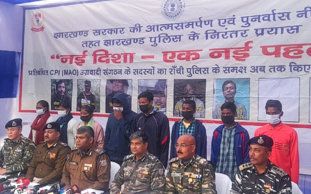 Jharkhand Naxal News|नक्सली संगठन भारतीय कम्युनिस्ट पार्टी (माओवादी) की केंद्रीय कमेटी के सदस्यों मिसिर बेसरा उर्फ सागर जी और पतिराम माझी उर्फ अनल दा के दस्ता के 8 सदस्यों ने बुधवार को राजधानी रांची में सरेंडर कर दिया. जिन नक्सलियों ने सरेंडर किया है, उनके नाम जयराम बोदरा उर्फ जूरिया बोदरा (21), सरिता उर्फ मुंगली सरदार उर्फ सरिता सरदार उर्फ सानिता (20), सोमवारी कुमारी उर्फ टोनी (21), मारतम अंगरिया (21), तुंगीर पुर्ति (18), पातर कोड़ा (18), कुसनू सिरका उर्फ कार्तिक सिरका (22), संजू पुर्ति उर्फ रोशनी पुर्ति (19) हैं.