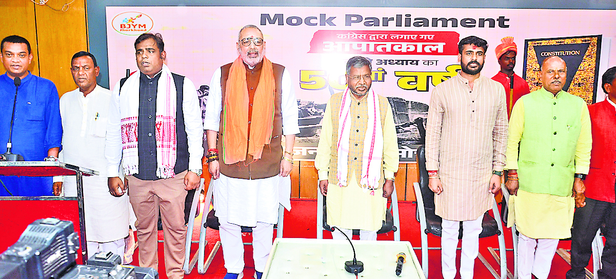 रांची. केंद्रीय कपड़ा मंत्री गिरिराज सिंह ने कहा कि आपातकाल देश के लिए सबसे बड़ा दंश है. इसमें लोकतंत्र की हत्या की गयी. नागरिकों के मौलिक अधिकारों का हनन और देश के बहुसंख्यक समाज को दबाने के लिए आपातकाल लगाया गया था. संविधान में संशोधन कर संसाधनों पर सत्ता का नियंत्रण किया गया, ताकि जो विद्रोह प्रधानमंत्री इंदिरा गांधी के विरोध में पूरे देश में है, उसको दबाया जा सके. श्री सिंह ने उक्त बातें गुरुवार को भाजयुमो रांची महानगर की ओर से पुराना विधानसभा भवन में आयोजित यूथ मॉक पार्लियामेंट में कही. प्रदेश भाजपा अध्यक्ष व नेता प्रतिपक्ष बाबूलाल मरांडी ने कहा कि इंदिरा गांधी ने संविधान की धाराओं में संशोधन कर अपने पद को बचाने के लिए संविधान से खिलवाड़ किया.
