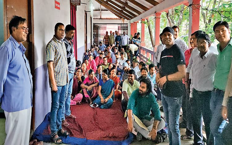 उच्च व तकनीकी शिक्षा विभाग से गुरुवार को बाकी बचे 57 कर्मियों की वेतन निर्धारण रिपोर्ट रांची विवि मुख्यालय नहीं पहुंची थी. इस कारण विवि मुख्यालय सहित पीजी विभाग के कर्मचारियों की कलमबंद हड़ताल जारी रही थी. सभी कर्मचारी काला बिल्ला लगाकर मुख्यालय व पीजी विभाग परिसर में धरना पर बैठे रहे थे. रांची विवि प्रशासन द्वारा कर्मचारियों को आश्वासन दिया गया था कि 13 जुलाई तक सभी कर्मियों का वेतन निर्धारण अनुमोदन होकर विवि पहुंच जायेगा. लेकिन, उच्च शिक्षा निदेशक के बीमार रहने के कारण रिपोर्ट पर हस्ताक्षर नहीं होने की वजह से रिपोर्ट विवि नहीं आ सकी. कर्मचारी नेता नवीन चंचल व अर्जुन राम ने कहा था कि अभी तो एक ही फेज का वेतन निर्धारण हुआ है. प्रोन्नति के बाद का वेतन निर्धारण बाकी है. ऐसे में जब तक वह रिपोर्ट भी अनुमोदन हो कर विवि नहीं आ जाती है, तब तक कलमबंद हड़ताल जारी रहेगा. मौके पर वीरेंद्र वर्मा, सुमित, इएनके कुजूर, विजय वर्मा, आलोक ठाकुर, पुष्कल, मोहित, मंगेश, जेआर मिंज, कैफी, हेमंत, मंजू, अनिल रोहिणी, लक्ष्मण, कमलेश, कर्मवीर, संदीप, धीरज महतो, शंकर, नसीमा खातून, मंजय, अन्नू, अंजना आदि थे.