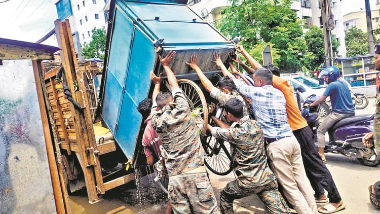रांची. झारखंड हाइकोर्ट के आदेश पर पूरे शहर में नगर निगम, जिला प्रशासन और ट्रैफिक पुलिस द्वारा अतिक्रमण हटाओ अभियान चलाया जा रहा है. इसी कड़ी में सोमवार को बरियातू पेट्रोल पंप से रिम्स चौक होते हुए हिल व्यू चौक तक अतिक्रमण हटाया गया. इस दौरान सड़क किनारे अवैध रूप से लगे दो टेबल, दो काउंटर, एक गुमटी, एक दर्जन प्लास्टिक के कैरेट को जब्त किया गया. 20 से अधिक अस्थायी झोपड़ी को भी तोड़ा गया. इसके अलावा गंदगी फैलाने और अतिक्रमण करने पर 5500 की राशि जुर्माना के रूप में वसूली गयी.