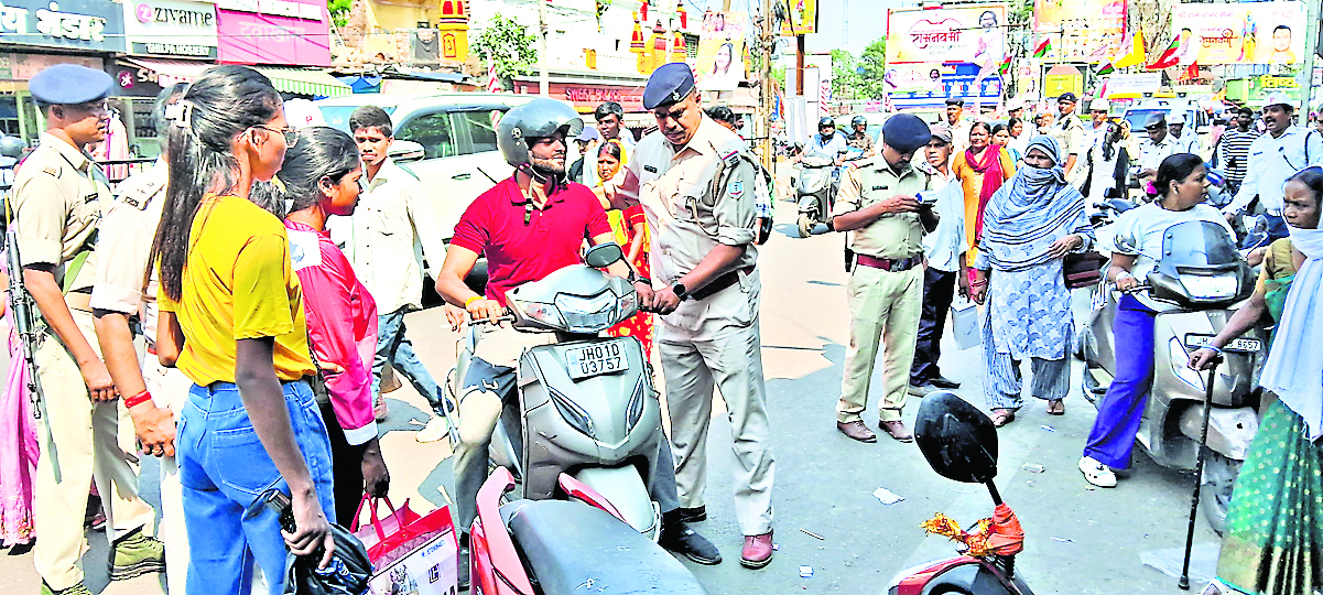 रांची. कचहरी से काली मंदिर मेन रोड तक मंगलवार को अतिक्रमण हटाओ अभियान चलाया गया. ट्रैफिक एसपी कैलाश करमाली खुद अभियान का नेतृत्व कर रहे थे. इस दौरान पुलिस को देखते ही फुटपाथ दुकानदार भागने लगे. इस चक्कर में कई दुकानदारों का सामान भी रोड पर गिर गया, जिसे ट्रैफिक पुलिस व निगम के कर्मियों ने जब्त कर लिया. थोड़ी देर के लिए मेन रोड में अफरा-तफरी मच गयी. बाद में फुटपाथ पर ड्राम लगा कर उसमें पानी भर दिया गया, ताकि वहां फिर से अतिक्रमण नहीं किया जा सके. ट्रैफिक एसपी ने चौक व रोड में तैनात पुलिककर्मियों से कहा कि किसी भी हाल में अतिक्रमण करने न दें.