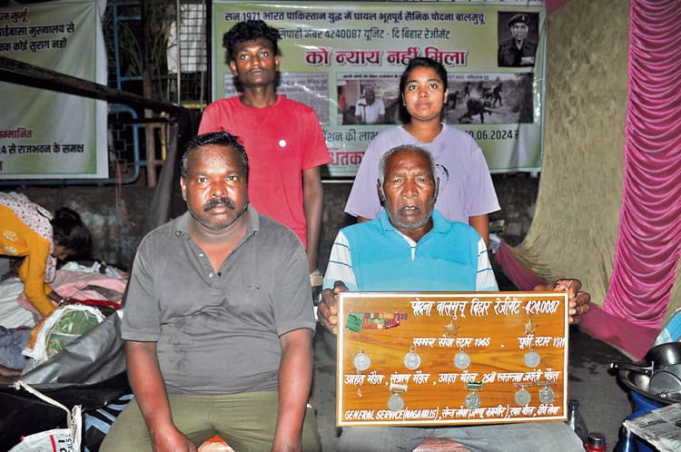 रांची (वरीय संवाददाता). 10 बिहार रेजीमेंट के सिपाही पुदना बलमुचू अपनी मांगों को लेकर पिछले सात दिनों से राजभवन के समक्ष परिवार के साथ धरना पर बैठे हैं. वर्ष 1965 और 1971 की लड़ाई में उन्होंने परमवीर चक्र अल्बर्ट एक्का के साथ युद्ध में दुश्मनों के दांत खट्टे किये थे. उस युद्ध में पैैर में गोली लगने से वह घायल हो गये थे. फिर कुछ दिनों बाद वे सेवानिवृत्त हो गये. सेवानिवृत्ति के बाद पिछले 53 सालों से उन्हें पेंशन की राशि नहीं मिली है. साथ ही झारखंड सरकार की ओर से दी जाने वाली पांच एकड़ जमीन भी उन्हें नहीं मिली है. 140 किलोमीटर पैदल चल कर पहुंचे हैं रांची : चाईबासा निवासी सिपाही पुदना बलमुचू वहां से 140 किलोमीटर पैदल चल कर रांची पहुंचे हैं. वह पिछले सात दिनों से धरना के माध्यम से मुख्यमंत्री तक अपनी बात पहुंचाने का प्रयास कर रहे हैं, लेकिन राज्य सरकार के किसी भी अधिकारी-कर्मचारी ने अब तक उनकी सुध नहीं ली है. पिछले साल भी उन्होंने अपनी मांगों को लेकर धरना दिया था. उस समय मुख्यमंत्री के हस्तक्षेप से चाईबासा डीसी को जमीन देने के लिए कहा गया था, लेकिन उनकी मांग पूरी नहीं की गयी. पुदना बलमुचू द्वारा धरना दिये जाने की जानकारी मिलने पर भूतपूर्व सैनिकों के संगठन वेटेरन ऑर्गनाइजेशन ऑफ झारखंड के अध्यक्ष मुकेश कुमार धरनास्थल पर पहुंचे. उन्होंने सिपाही पुदना बलमुचू की पेंशन के लिए इएसएम डायरेक्टर स्टेशन हेडक्वार्टर से बात की. उन्होंने कहा कि उनकी मांगाें को शीघ्र पूरा करने के लिए वे राज्य सरकार के सक्षम पदाधिकारियाें से भी जल्द मिलेंगे. साथ ही संगठन के प्रतिनिधि रक्षा राज्य मंत्री के सामने सिपाही पुदना बलमुचू की समस्या को रखेंगे.