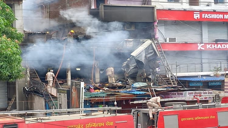 Jharkhand News: रांची जिले के नामकुम प्रखंड के सदाबहार चौक स्थित लक्ष्मी भंडार एवं एसआर फैशन मॉल में भीषण आग लग गई. आगजनी में 80 लाख के सामान सहित एक करोड़ से अधिक का नुक़सान हुआ है. पुलिस की सूचना पर पहुंची दमकल की 20 गाड़ियों ने सात घंटे की मशक्कत के बाद आग पर काबू पाया. आग लगने की वजह शॉर्ट सर्किट बताई जा रही है. शॉर्ट सर्किट से आग लगने के बाद आग फैलते हुए किचन तक पहुंची, जहां आग की वजह से गैस सिलेंडर ब्लास्ट कर गया, जिसके बाद स्थिति भयावह हो गई. आगजनी में दुकान के मालिक प्रकाश कुमार एवं प्रकाश का भाई कपिल कुमार झुलस गए.