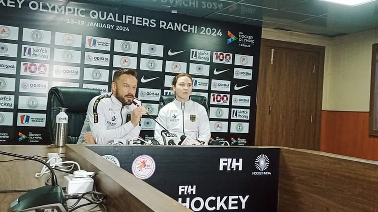 एफआईएच हॉकी ओलंपिक्स क्वालीफाईइंग मैच खेलने के लिए रांची पहुंची जर्मनी की टीम के कोच वैलेंटिन अल्टबर्ग और कैप्टन नाइक लौरेंज ने मीडिया से बातचीत की. वहीं अपने भारत आने के अनुभव पर कोच कहते हैं कि ‘भारत आकर भारत के खिलाफ ही खेलना हमारे लिए बेहतरीन मौका है. हालांकि यहां आने से हमारे समय और मौसम में काफी बदलाव हुआ है, जो हमारे लिए चैलेंज हैं. लेकिन पिछली गर्मियों में टीम इंडिया जर्मनी आई थी. हमने बेहतरीन मैच खेला था और डांस किया था. ऐसे ही बेहतरीन मैच की उम्मीद हम इस टूर्नामेंट में भी करते हैं.’