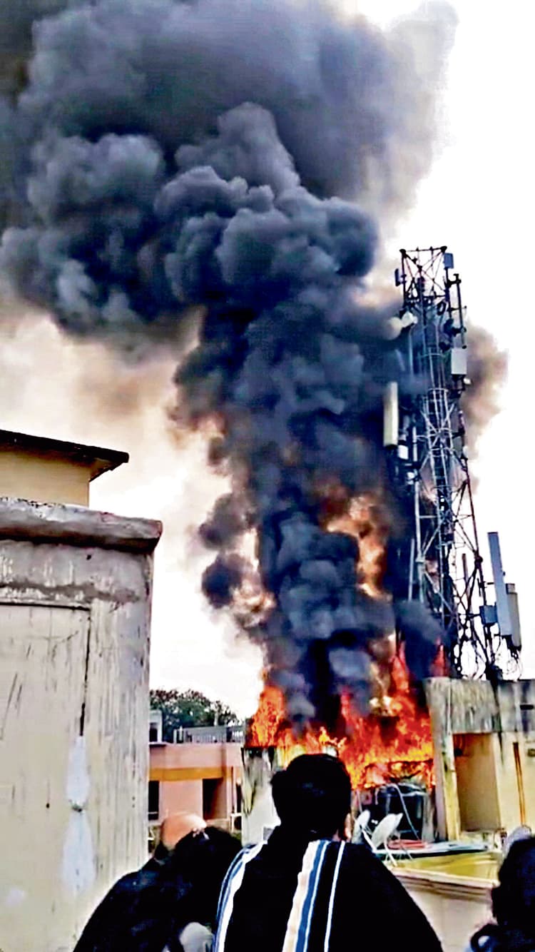 रांची. कोतवाली थाना क्षेत्र के लाइन टैंक तालाब स्थित शारदा बाबू लेन के रामकृष्ण अपार्टमेंट की छत पर लगे मोबाइल टावर में रविवार को अचानक आग लगी गयी. घटना के बाद अपार्टमेंट में रहने वालों लोगों के बीच अफरा-तफरी की स्थिति उत्पन्न हो गयी. तत्काल ही अपार्टमेंट के लोगों ने घटना की सूचना पुलिस को दी. पुलिस ने मौके पर फायर ब्रिगेड की टीम को भेजा. लेकिन इसके पहले ही अपार्टमेंट में रहने वाले लोगों ने बाल्टी और पाइप से पानी डालकर आग पर काबू पा लिया. हालांकि खबर लिखे जाने तक यह स्पष्ट नहीं हो सका है कि आग शॉट सर्किट होने की वजह से लगी थी या किसी अन्य कारण से. घटना को लेकर थाने में लिखित शिकायत नहीं की गयी है.