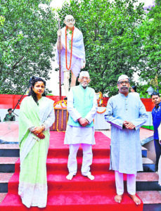 राज्यपाल और सीएम ने महात्मा गांधी की प्रतिमा पर माल्यार्पण किया
