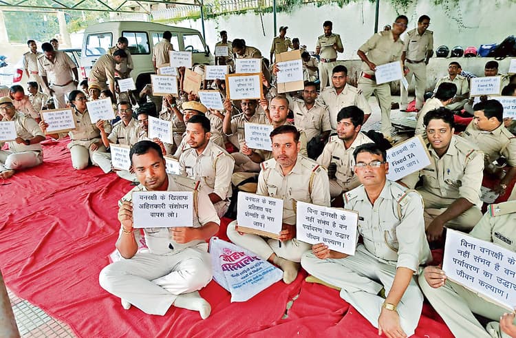 रांची. वन विभाग में कार्यरत सैंकड़ों वनरक्षियों ने मंगलवार को राजधानी स्थित वन विभाग के मुख्यालय में धरना दिया. वे वनरक्षी नियमावली में हो रहे बदलाव का विरोध कर रहे हैं. वनरक्षियों का कहना है कि पहले उनके प्रमोशन का पद शत-प्रतिशत था. अब अगले प्रमोशन के पद में 50 फीसदी सीधी नियुक्ति तथा 50 फीसदी प्रमोशन से भरने की तैयारी हो रही है. मंगलवार को मुख्य सचिव एल ख्यांग्ते ने वनरक्षियों के प्रतिनिधियों को वार्ता के लिए बुलाया. इसमें अवर वन सेवा संघ के महामंत्री मनोरंजन कुमार, जीतेंद्र कुमार, शशिकांत महतो और राजीव रंजन सिंह शामिल हुए. वन विभाग से पीसीसीएफ भी शामिल हुए. अधिकारियों ने कहा कि नियमावली में बदलाव का मामला सरकार के स्तर पर विचार किया जायेगा. इसके लिए दो दिनों का समय चाहिए. उनकी अन्य मागों को जल्द पूरा कर दिया जायेगा. वार्ता के बाद संघ की ओर से तय किया गया कि उनका आंदोलन अगले दो दिनों तक जारी रहेगा. सरकार का निर्णय आने के बाद अगले कदम पर विचार किया जायेगा. वनरक्षी पूर्व की तरह ही नियमावली रहने देने की मांग कर रहे हैं. इसी मांग को लेकर पूरे राज्य के वनकर्मी अपने-अपने जिलों में धरना-प्रदर्शन कर रहे हैं. वन भवन में रांची और खूंटी के वनरक्षी भी धरना में शामिल हुए. सभी अवर वन सेवा संघ के बैनर तले आंदोलनरत हैं.