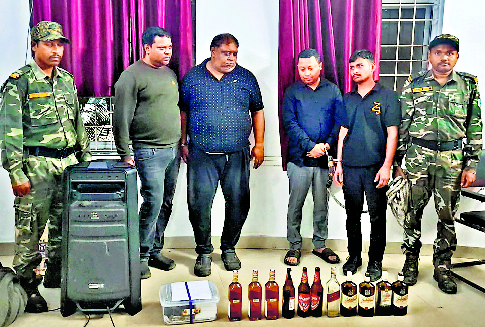 वरीय संवाददाता, रांची़ कचहरी चौक के समीप स्थित होटल में छापेमारी कर अवैध तरीके से शराब रखने, जुआ खेलने और तेज आवाज में गाना बजाने के आरोप में बिल्डर सहित होटल के दो कर्मचारियों को पुलिस ने गिरफ्तार किया है. सभी आरोपियों को जेल भेज दिया गया है. गिरफ्तार आरोपियों में नामकुम के तेतरी टोली निवासी 44 वर्षीय बिल्डर रमेश कुमार शर्मा, सामलौंग निवासी मनोज कुमार पंडित और कर्मचारियों में बैंक कॉलोनी निवासी अनिल चंद्र मंडल व चडरी तालाब के समीप रहने वाले सचिन कुमार शामिल हैं. पुलिस ने मनोज पंडित के पास से 1.50 लाख रुपये, रमेश कुमार शर्मा के पास से 31,500 रुपये, दोनों के पास से एक-एक फोन, होटल के कमरे से साउंड सिस्टम, ताश, नोटबुक, महंगी शराब की खाली और भरी बोतल बरामद की है. पुलिस ने गिरफ्तार आरोपियों के अलावा तमाशा रेस्ट्रो बार/होटल जेड-03 के मालिक और मैनेजर सहित जुआ खेलवाने के आरोप में नामकुम निवासी गोपाल लोहिया के खिलाफ केस दर्ज किया है. पुलिस को मालिक और मैनेजर की तलाश है.
